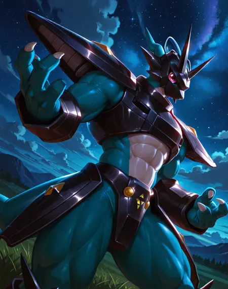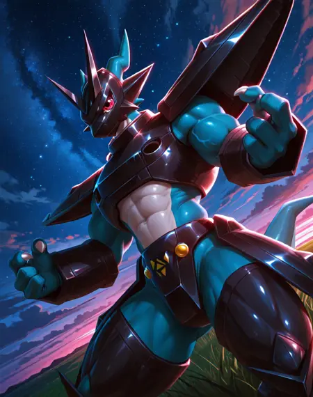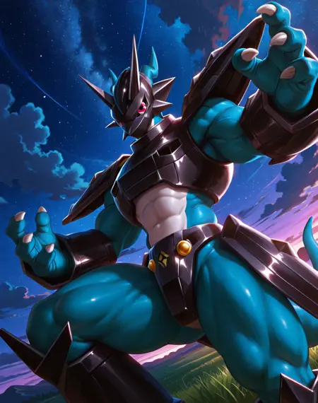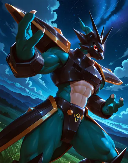 このLoRA用のプロンプトは(BlackMagnamon, muscular, Digimon, )です。