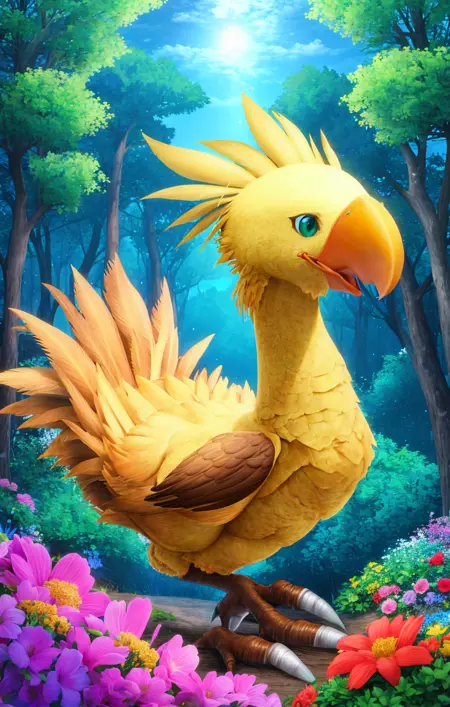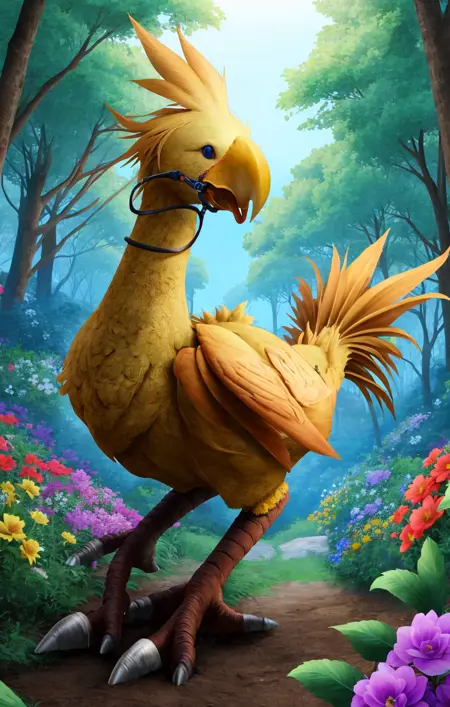 'detailed, soft lighting, forest, chocobo, no humans' 예시 프롬프트