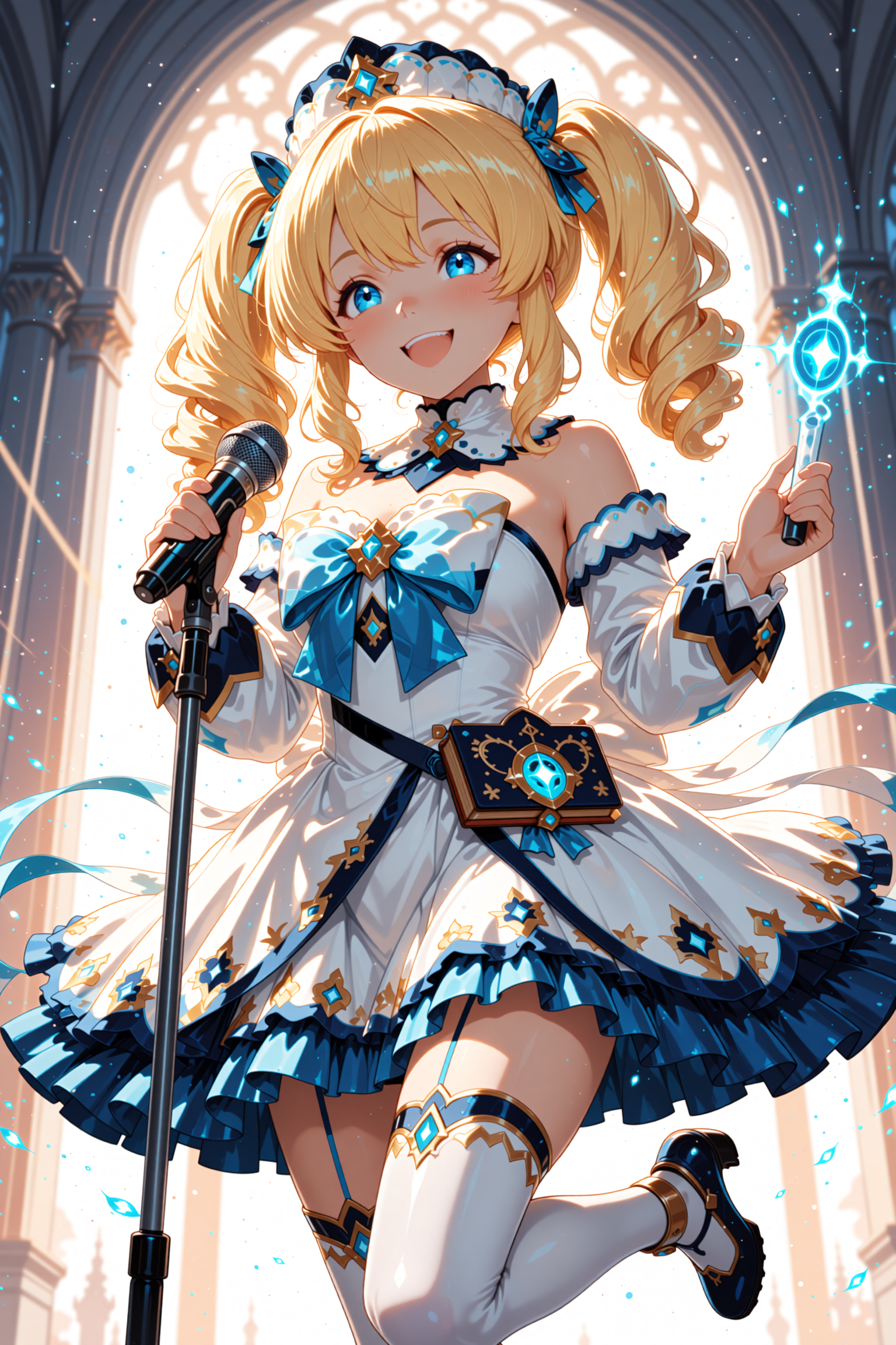 anime, 1girl, elf, long white hair, glowing blue eyes, pointy ears, nature background, ANIME, masterpiece, sharp focus, ethereal glow, MOE STYLE, tree magic, fast render
