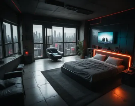 This is a Pony architecture lora for Cyberpunk style interiors.