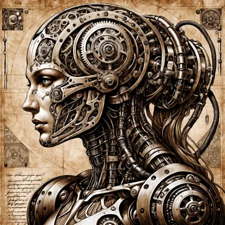 이 LoRA는 제가 직접 생성한 이미지를 기반으로 만들었으며, 레오나르도 다 빈치의 해부학적/의학적 스터디를 영감으로 삼아 생체기계적 요소를 추가한 르네상스 스타일 펜 및 잉크 스케치를 모델로 삼았습니다. 이 개념을 바탕으로 제가 직접 생성한 55장의 이미지를 사용하여 Civitai에서 훈련했습니다. Civitai는 Epoch 15가 가장 좋을 것이라고 제안했지만, 제가 실험한 결과 Epoch 8이 가장 적절하다고 판단했습니다. Epoch 15는 너무 강력했기 때문입니다.