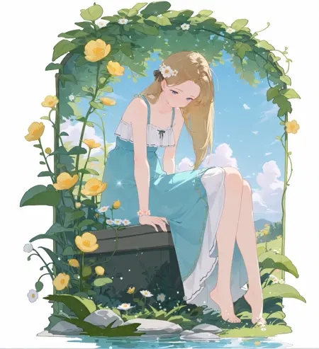 This model provides a fairytale-like style effect for the pictures. The painting style is fresh and gentle, with a watercolor style, and the pictures are composed of color blocks and lines. This Lora model can present good effects under different base models such as 2D, 2.5D, and 3D. Welcome to try it more and send back pictures.