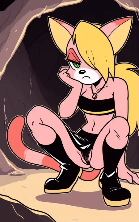 강화 태그: 푸리, 푸리 여성, 꼬리, 고양이 꼬리, 금발, 긴 머리, 머리묶음, 한쪽 눈 위의 머리카락, 녹색 눈, 분홍색 피부, 동물 귀, 고양이 귀, 동물 코,