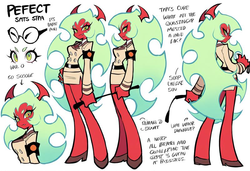 輪状の目, 尖った歯, スカート, 帽子, 悪魔の少女, ネクタイ, 制服, 警察制服, ブーツ, フィッシュネット, 手錠, チャイナ足袋, シャツ, 胸, 黒い頭部装飾, パンティストッキング, 太ももブーツ, 黒いネクタイ, ベルト, 黒いスカート, 指甲, 黒い靴, スパイク付きブレスレット, ミニスカート, ポロシャツ, ペンシルスカート, 警察帽, 黒いベルト, 太ももストラップ, 短い袖, 中程度の胸, スパイク, 尖った指先, 悪魔の角, 大きな髪, フィッシュネットチャイナ足袋, 横スリット, 手錠, 公式スタイル, フィッシュネットパンティストッキング, 大きな胸, 黒いチャイナ足袋, パンティストッキングの上にチャイナ足袋
