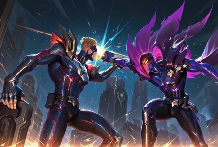 **revolution_form,esv_mask,red mask,esv_cape,esv_bodysuit,esv_boots,yellow eye,purple eye,**esv_eyes