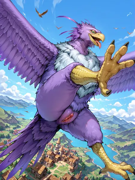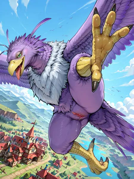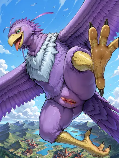 gigantic monster, avian female, bird monster, dragon quest, toriyama akira \(style\),