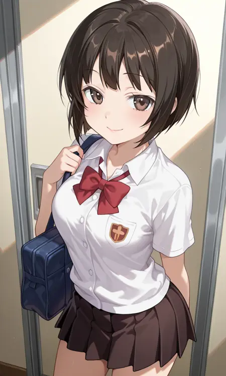 maekawa, 1girl, brown eyes, short hair, brown hair, black hair