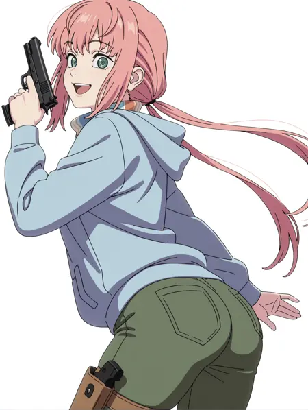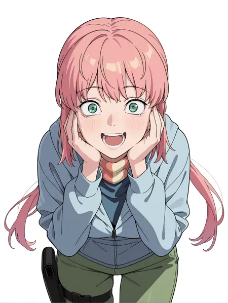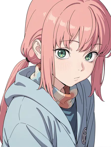 触发词:shi_ka_ku,粉发,绿眼,低双马尾,