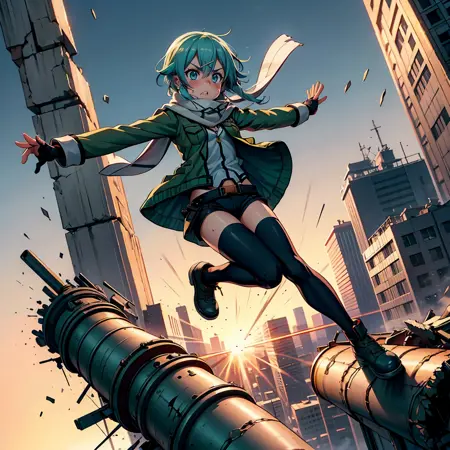 このシーンでは主に通常の工業用パイプを渡る様子が描かれていますが、崩壊の寸前であるパイプの画像も一部含んでいます。したがって、「爆発」や「爆発する工業用パイプ」などの破壊に関連するプロンプトを組み込むと、このような画像が生成される可能性があります。