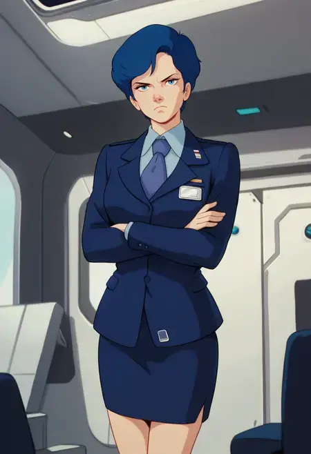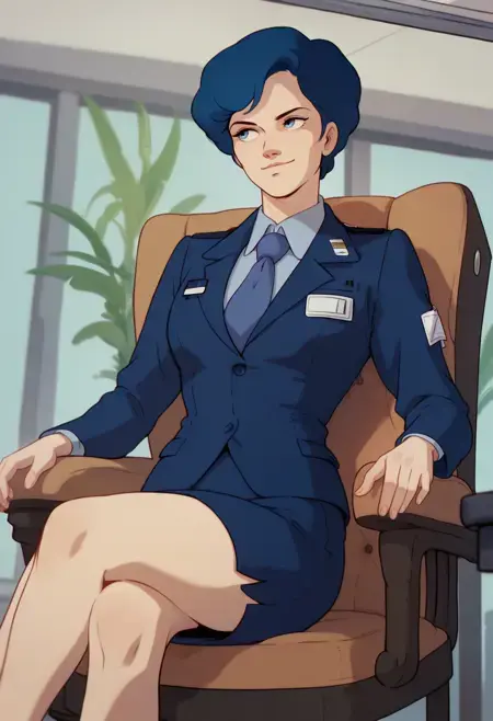 スーツ、軍服、青いネクタイ、青いジャケット、青いスカート、ペンシルスカート、名札