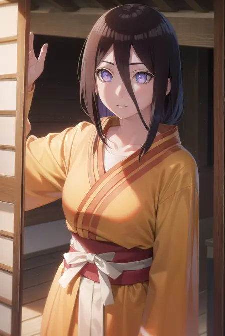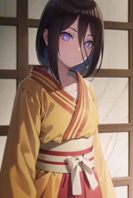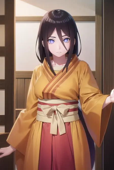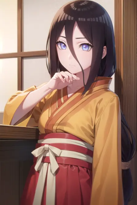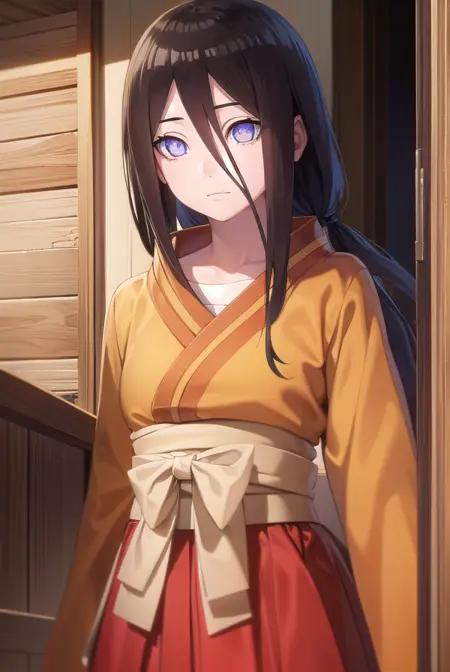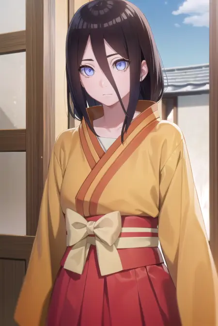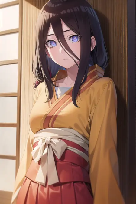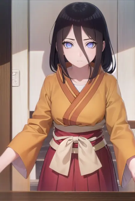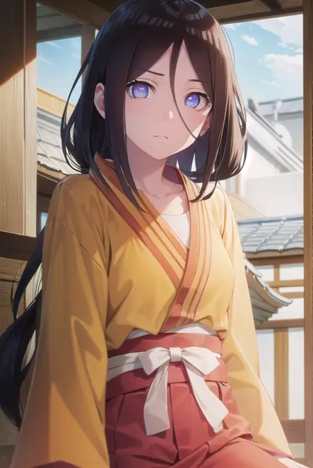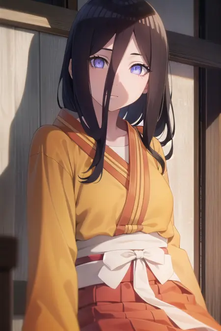 스커트, 긴 소매, 일본 복장, 김코, 샌들, 하카마, 주황색 김코, 빨간색 하카마,