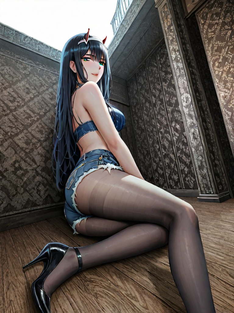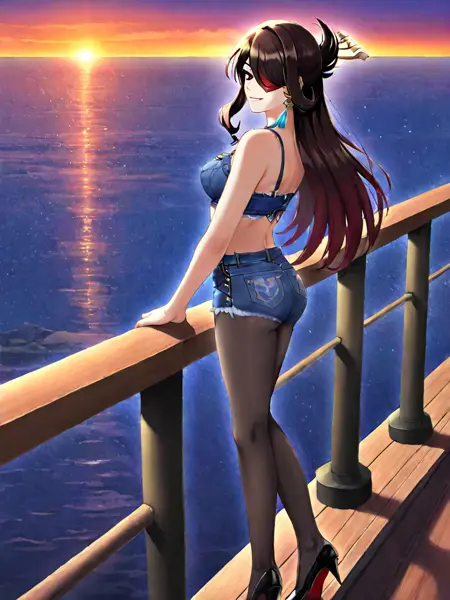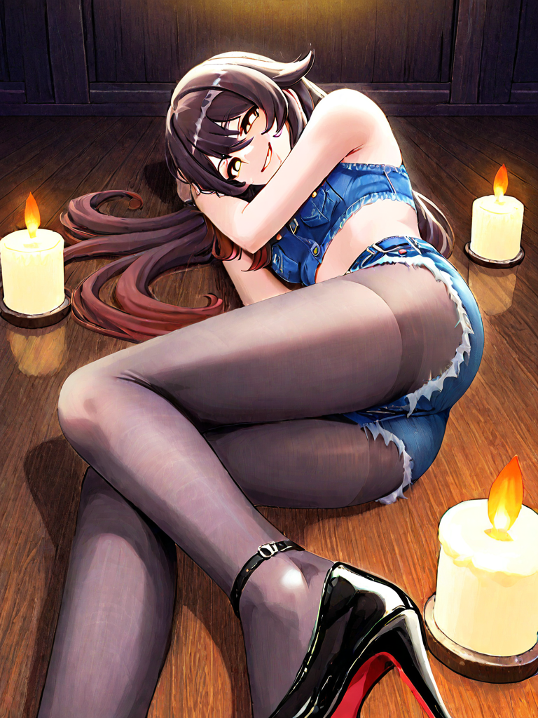触发词:牛仔布,高跟鞋,黑色丝袜