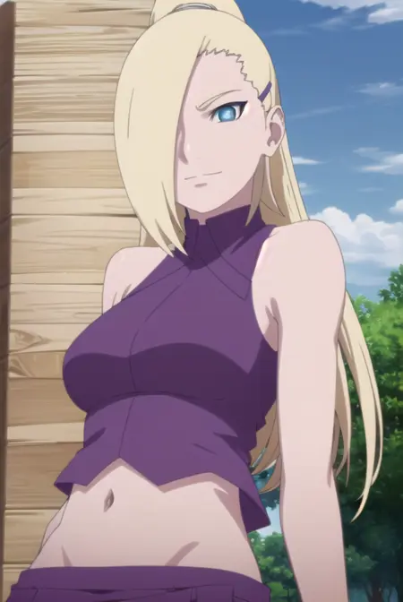 ino yamanaka、長い髪、青い目、金髪、ポニーテール、片方の目を覆う髪