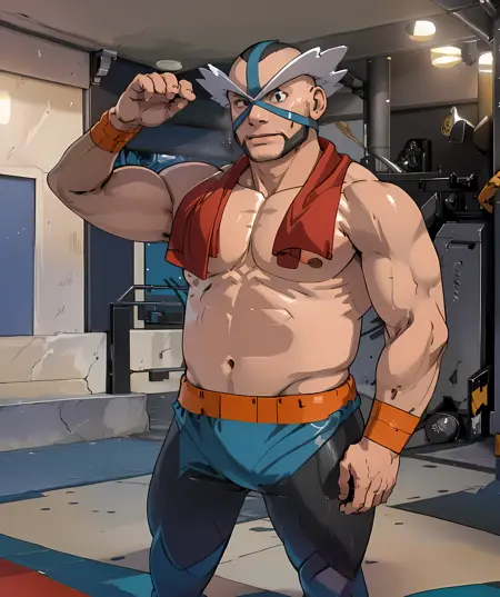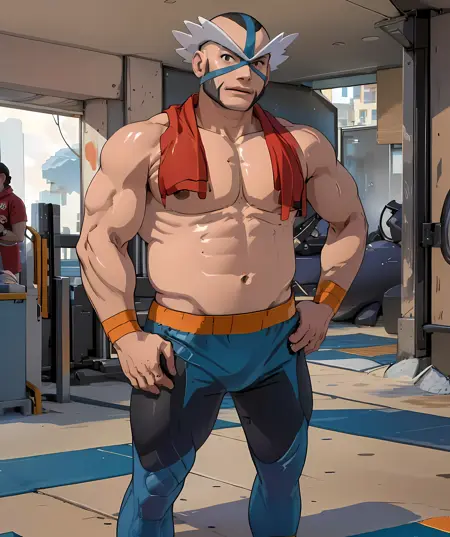 I made this eccentric midde-aged Pokemon Gym Leader from Pastoria City, Crasher Wake. He's known for Water-Type Gym, Wrestler, and has hobby of singing of his wrestling intro song or other song that might he want to sing. I use 90+ images from various site including Google Image Search, Pinterest, Tumblr, or even TV Show.