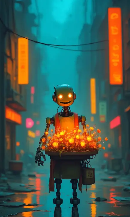 すべての被写体において、豊かな彩度、温かみのある照明、表現力豊かなデザインが期待できます。居心地の良いロボットの仲間、光る街路、不思議な魔法の生き物など、どんなテーマにもぴったりと溶け込みます。このスタイルの核となる本質は**「明るく、ハッピーで、オッド」**——絵画的エネルギー、鮮やかなコントラスト、そして少しのいたずら心に満ちた想像力です。