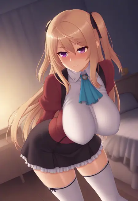 推奨プロンプト:Kurisu Kouno, purple eyes, blonde hair, long hair, half updo, twintails, hair ribbon,