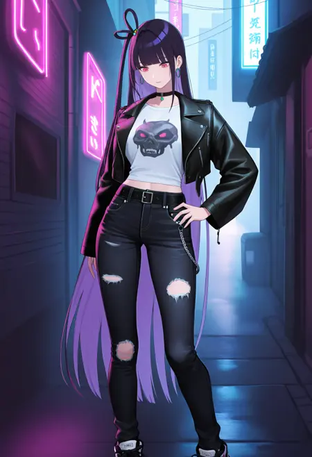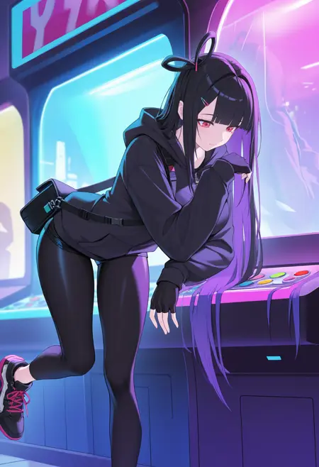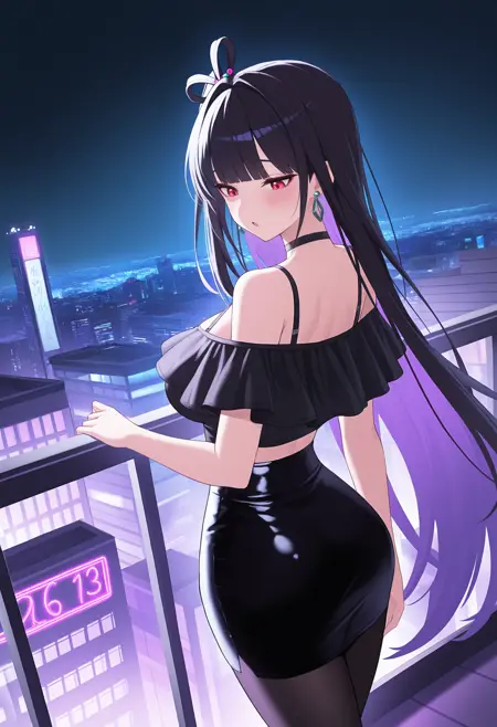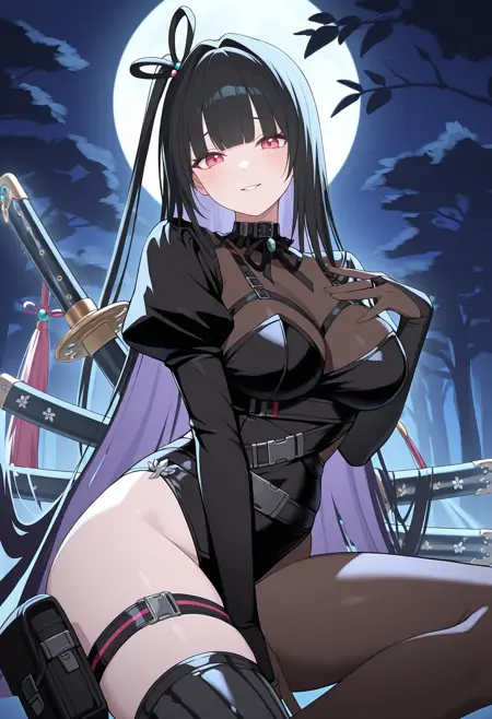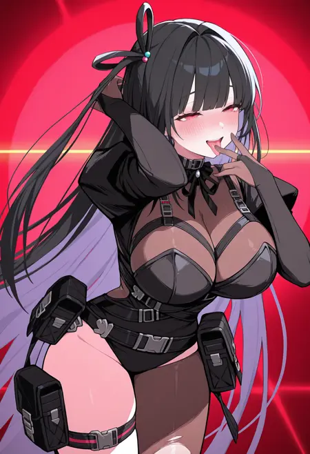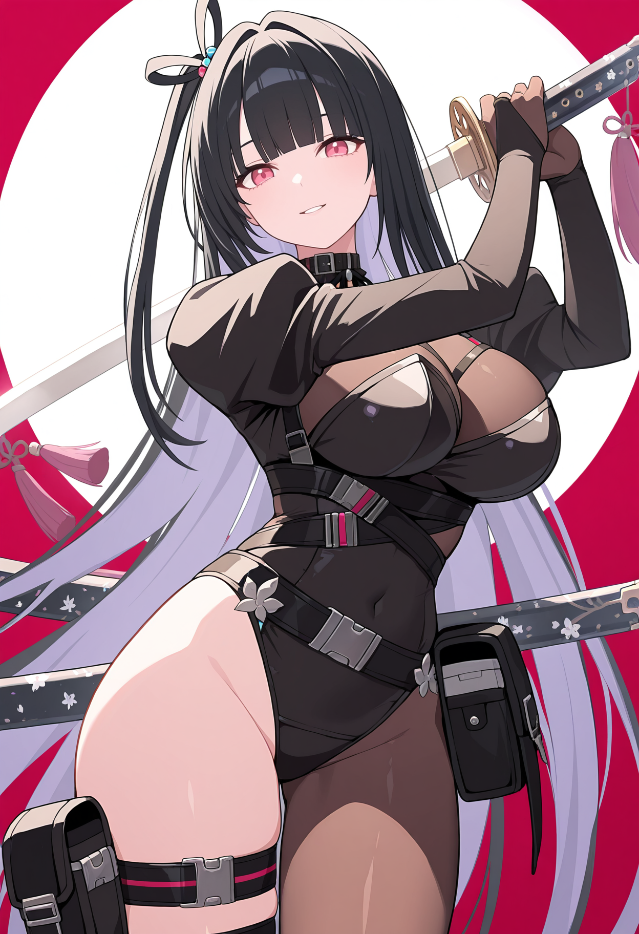 | トレーニングワード | r1nczn, pink eyes, black hair, very long hair, colored inner hair, purple hair, hair intakes, side ponytail, hair rings, hair ornament, blunt bangs, belt choker, frilled choker, neck ribbon, chest harness, black dress, juliet sleeves, long sleeves, bridal gauntlets, large breasts, bodystocking, multiple belts, black belt, belt buckle, clothing cutout, black leotard, belt pouch, thigh belt, thigh pouch, asymmetrical legwear, single leg pantyhose, single thighhighs, vertical-striped thighhighs,コピーしました! |