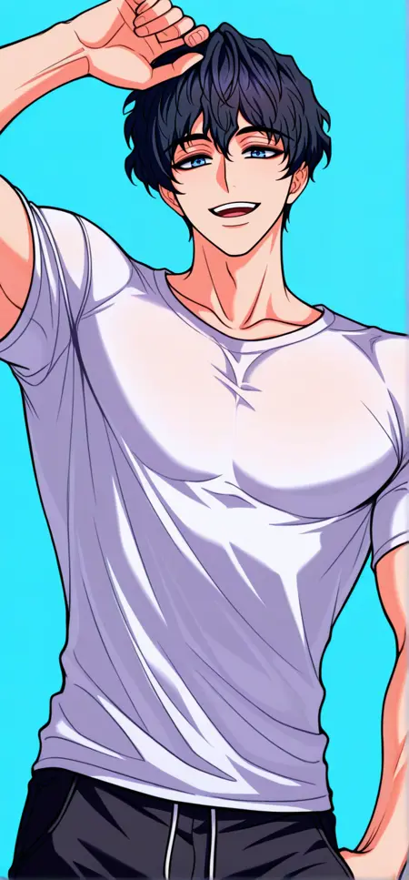 Trigger words: jun hyeok,black hair,wavy hair,muscular male,blue eyes,