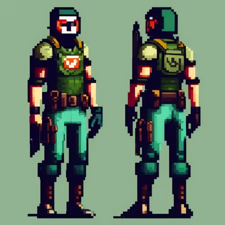 我试过所有像素艺术风格的模型,但都没有达到我想要的效果,于是我决定自己制作一个。该模型重现了像素艺术风格,但加入了更现代的8位风格元素。这个模型非常适合横向卷轴场景,配合ControlNet 2.1的OpenPose使用时,也非常适合角色生成,同时在道具及其他物品的生成上也表现出色。