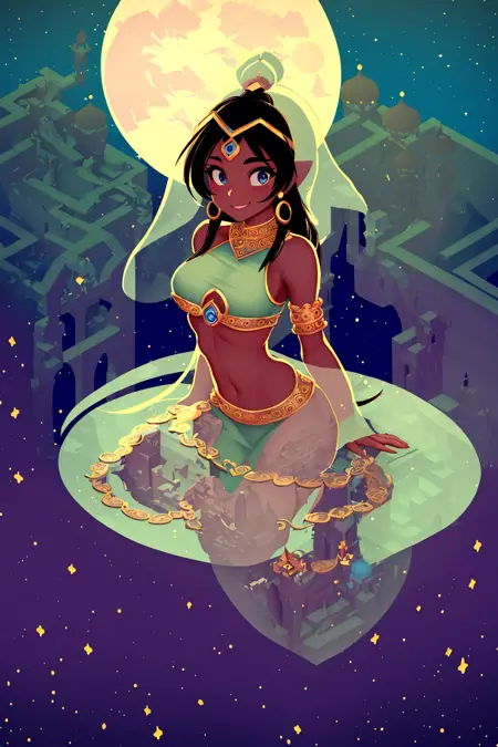 这个 LoRA 会为你的作品带来受《纪念碑谷》游戏启发的几何与锐角背景。在以人物为主的图像中,效果会较为微妙;而在无人物的图像中,你会获得非常强烈的风格影响。AI 在生成精确的直线和锐角方面表现不佳,尤其是当它们位于背景且尺寸较小时,但你仍能获得整体的美学风格,即使看起来有点粗糙。