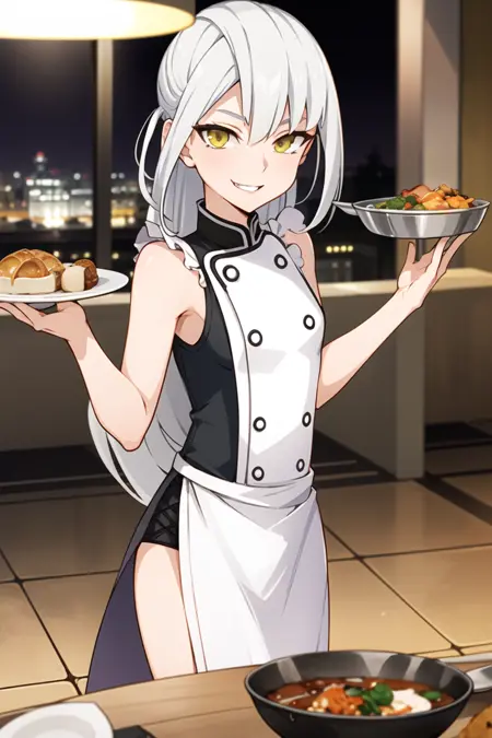 그레이스 타일러를 호출하려면, LoRA 뒤에 아래와 같이 입력하세요: Grace Tyler, white hair, yellow eyes, 1girl, solo
