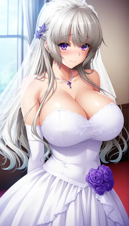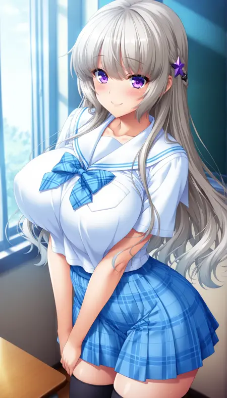 大鳥ふみか、銀髪、ロングヘア、パープルの瞳、紫の星型ヘアクリップ