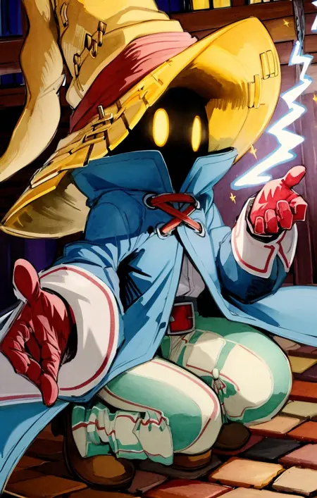 'detailed, vivi, wizard, glowing yellow eyes' 示例提示