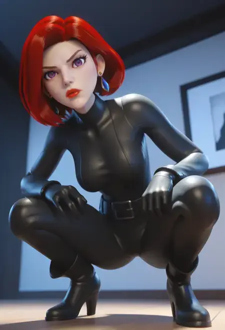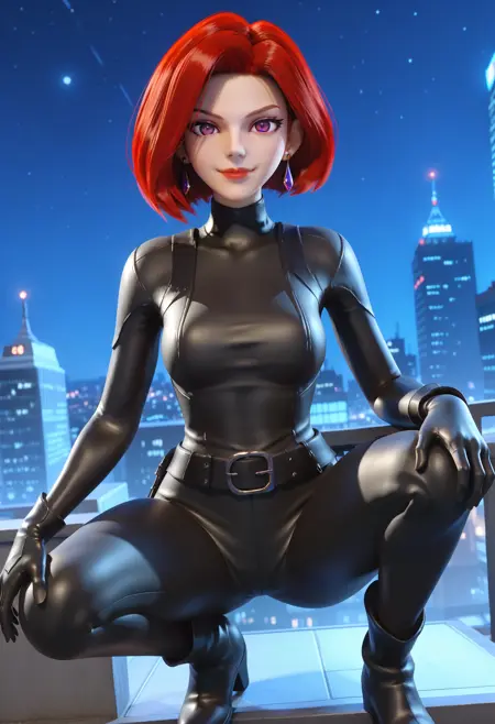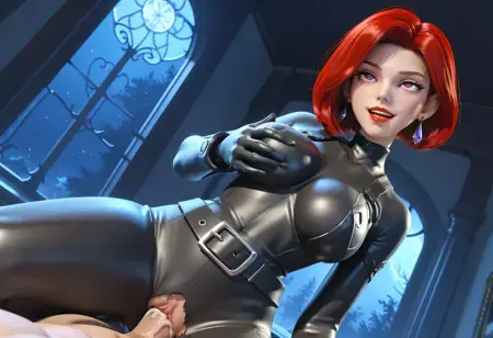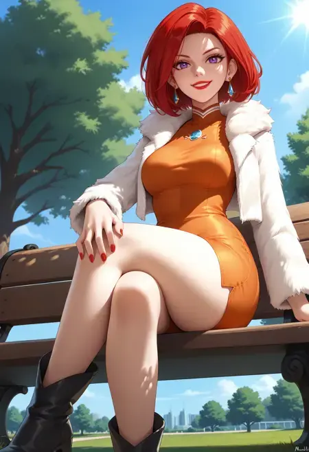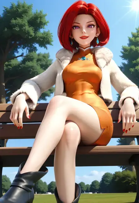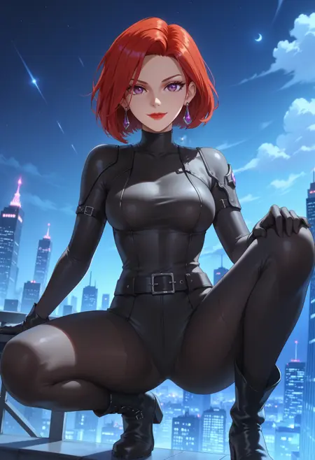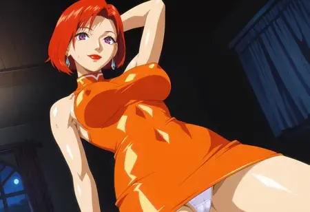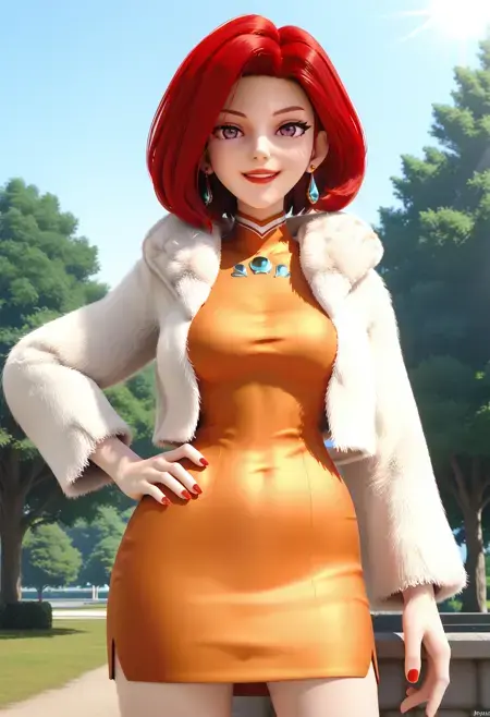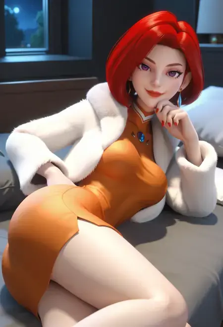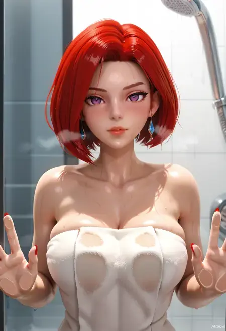 MBHongBi,1girl,红发,短发,紫眼,耳环,口红,乳房,