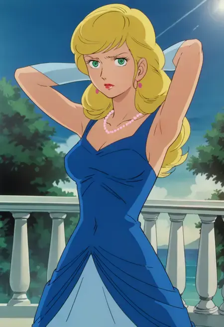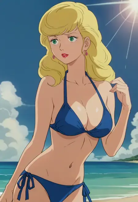 FGIcelina、1girl、単体、金髪、長い髪、緑の目、リップスティック、大きな胸