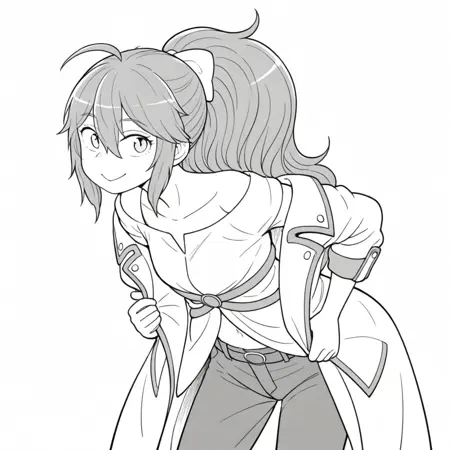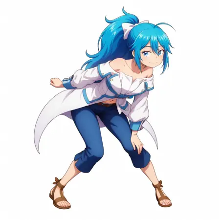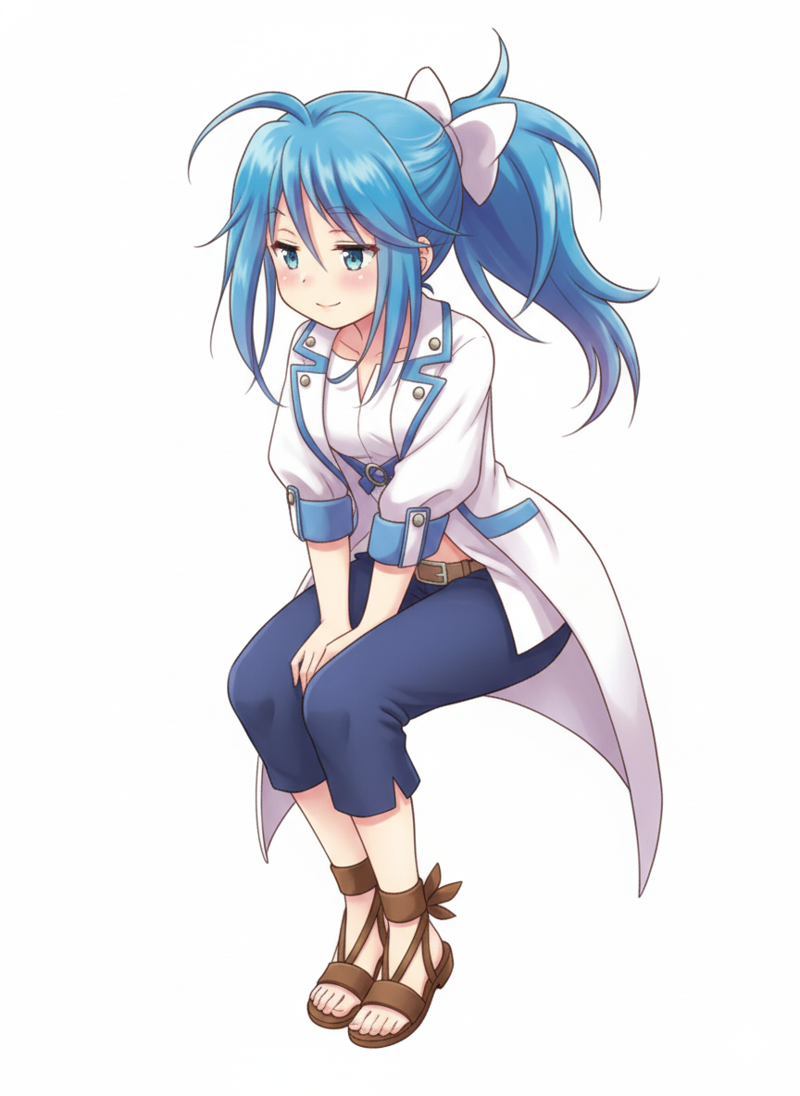 また、偶然にも公式マンガの原画から彼女のフルカラー版を見つけました。その後、ライトノベルのイラストで彼女のデザインを検索し、少し編集を加えました。このキャラクターの青色が多すぎると感じたため、ベルトとサンダルを茶色に変更しました。