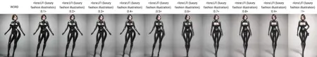 このツールは、キャラクターを背が高く、細身にし、主にスーパーモデルのような体つきにします。また、顔の骨格をよりシャープで表現力豊かにします。