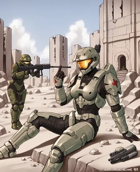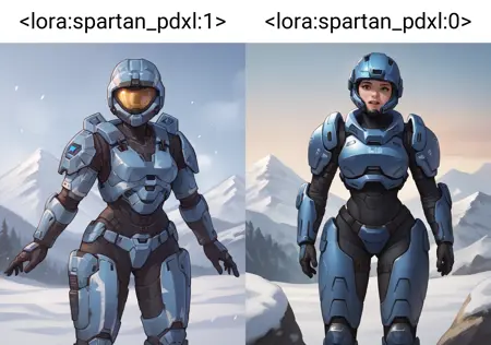 このモデルはPDXLでの使用に向けて更新されました。右の「このバージョンについて」セクションをご確認ください。基本的に同じモデルですが、よりよいタグで、より高い解像度で、よりよいオプティマイザーを使用して再学習しました。データセットは20枚増加され、合計85枚になりました!技術的には、PonyDiffusionはすでに多くの『Halo』スパルタンアートで学習済みですが、完璧ではないため、このようなLORAはヘルメットの形状やアーマーの微細なディテールの再現に大きく貢献します。お楽しみいただけますように。