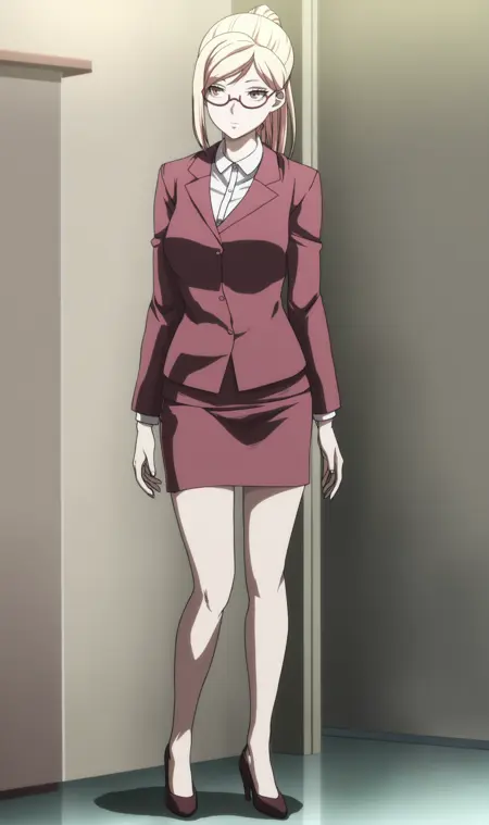 office lady,formal,jacket,shirt,white shirt,red jacket,collared shirt,miniskirt,pencil skirt,red skirt