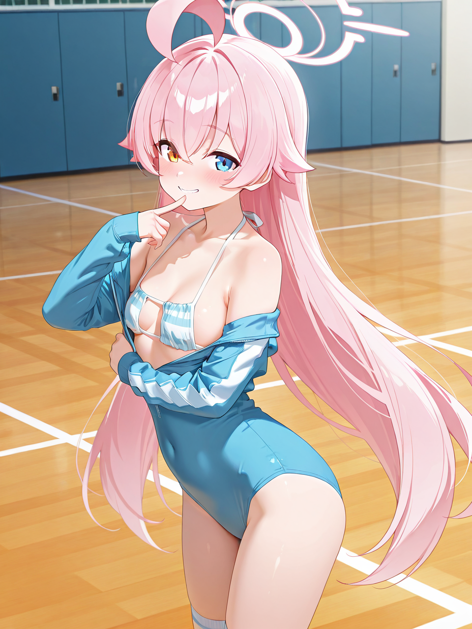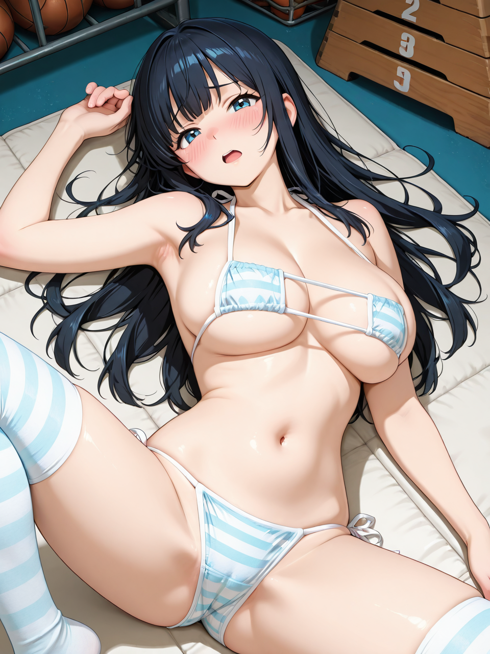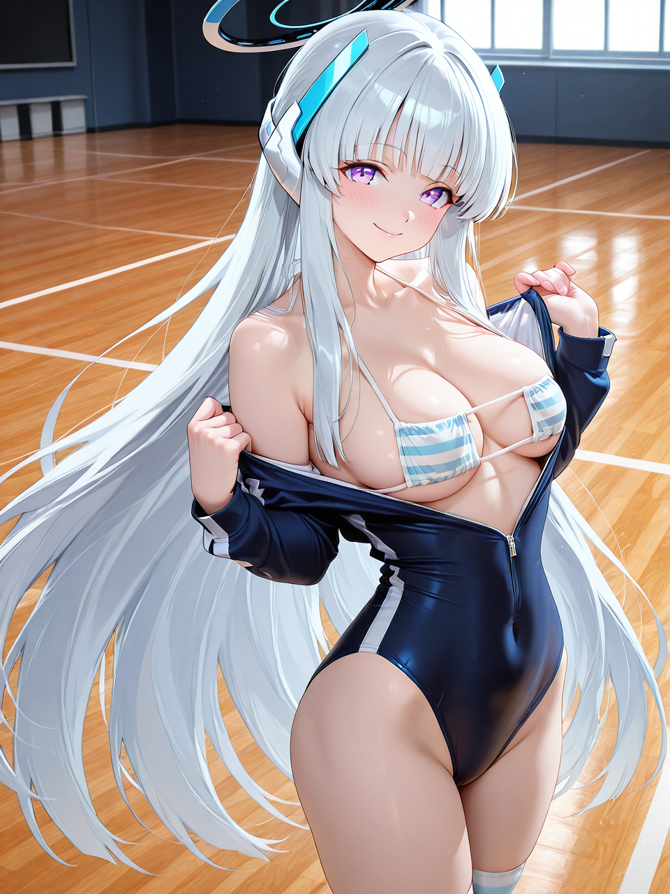 - この衣装は、フィットネス用のタイトなレオタード、ビキニセット、オーバー膝ソックスで構成されています。3つのプロンプトはそれぞれ3つの着衣状態(完全着衣、半脱ぎ、ビキニのみ)に対応しています。必要に応じて使用し、混ぜ合わせないでください。