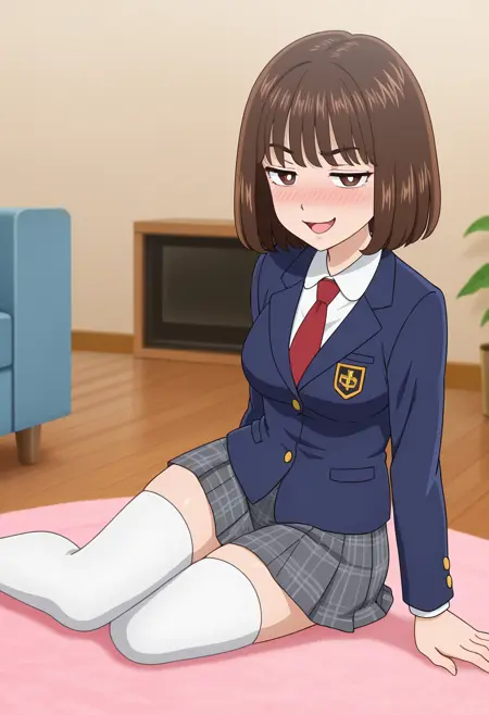 - yosugiww, brown eyes, white pupils, brown hair, medium hair, bob cut,