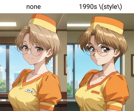 Using '1990s (style)' in the prompt will make the illustration look closer to an anime style.