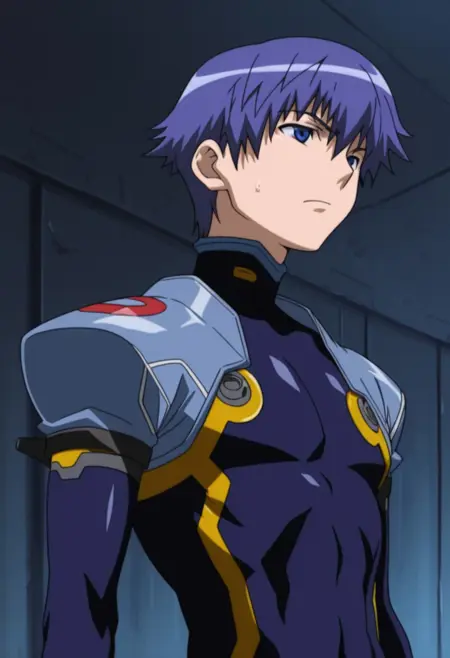 1boy, male focus, solo, blue eyes, blue hair, blue bodysuit,