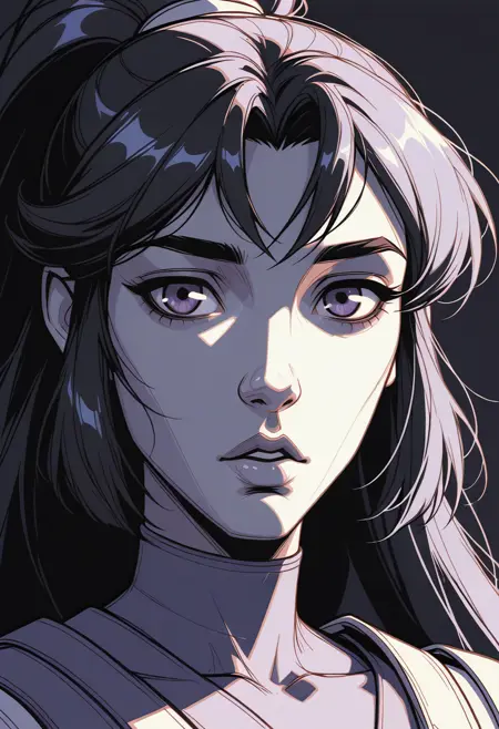 neon shatter, neon shatter art, neon shatter, chroma split portrait, vivid geometric face, digital art, illustration, graphic novel style, pop art influence, vector art aesthetic, stylized portrait, duotone effect, high contrast lighting, vibrant colors, geometric shading, hard shadows, flat color areas, bold outlines, clean lines, sharp line art, stylized features, ultra detailed, dramatic eyeliner, defined eyebrows, close-up portrait