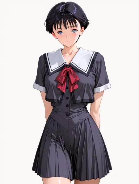 制服:kanda1_uniform、红领带、短裙、短袖、白袜、乐福鞋