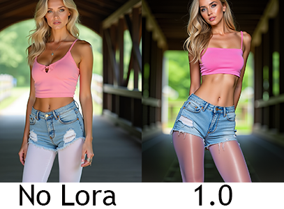 This LoRA was trained on full-body and leg-focused images, not extreme close-ups of feet. If you're looking for detailed toe-level shots or dramatic low-angle views looking up from the ground, you'll likely get inconsistent results.