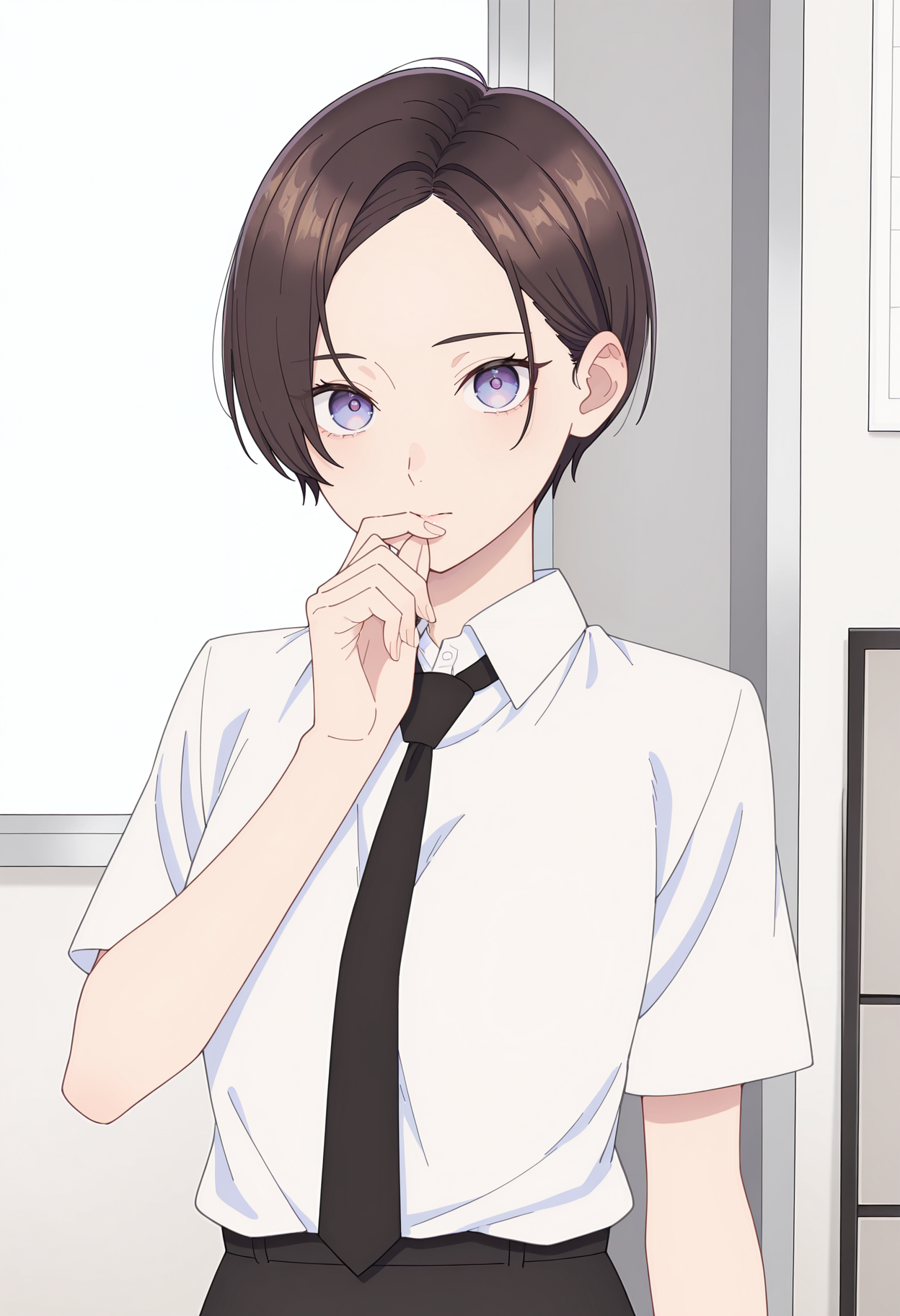 • uruytyoi, 단발, 갈색 머리, 다색 눈, 보라색 눈, 파란색 눈, 측면 앞머리,