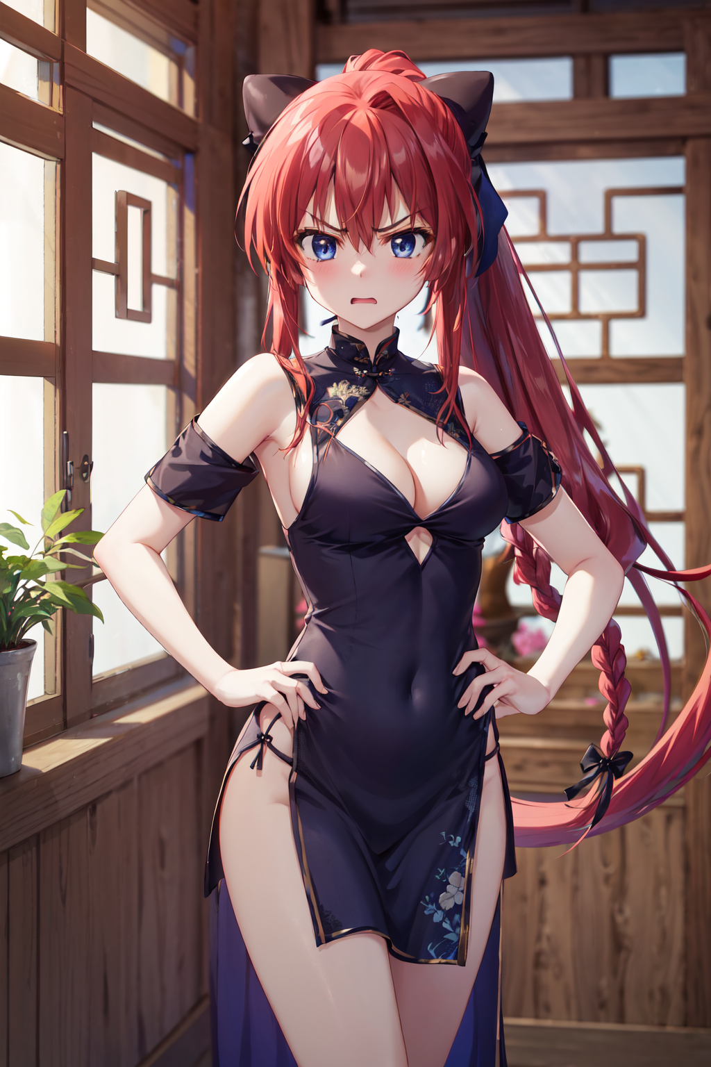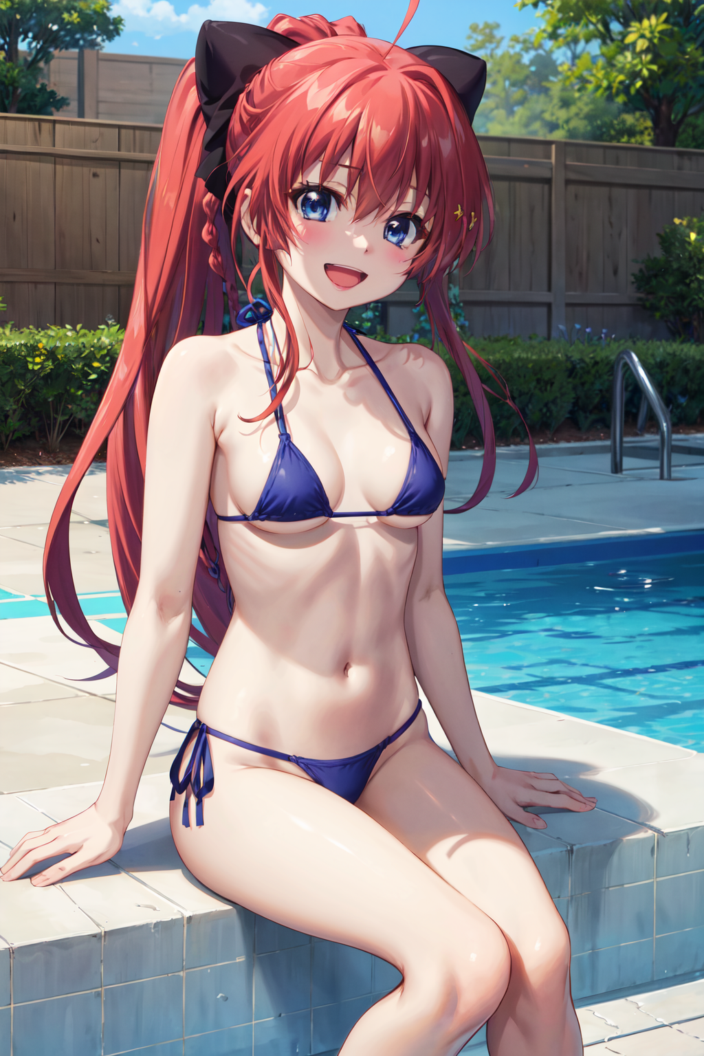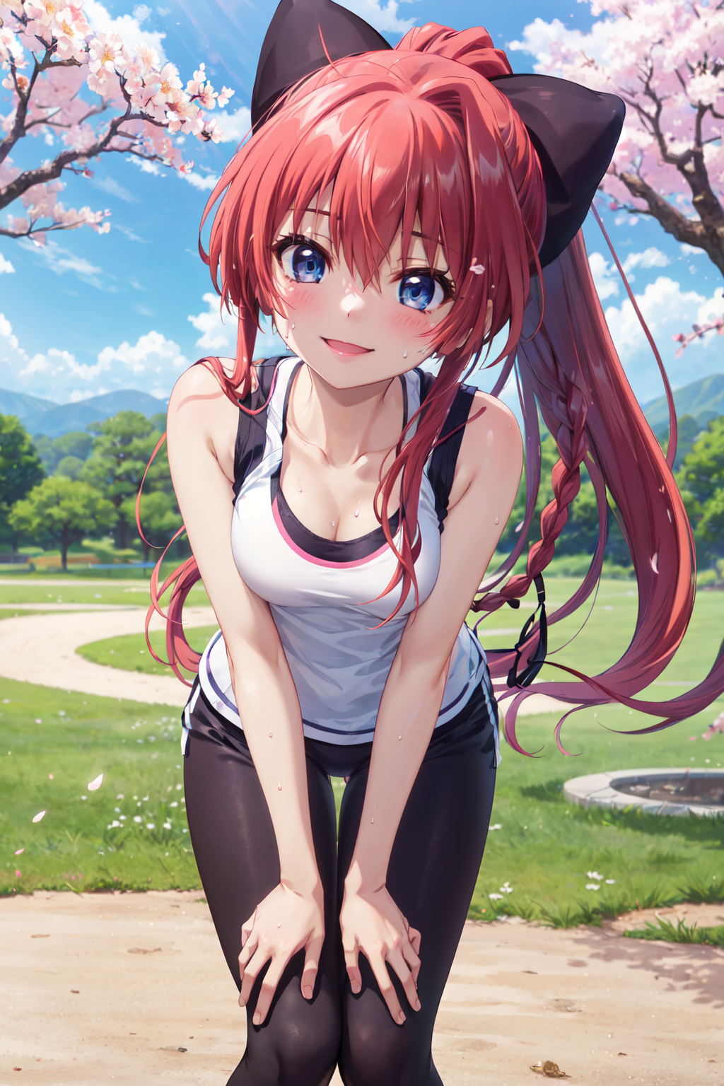 inui sana,blue eyes,long hair,high ponytail,ahoge,braid,hair between eyes,bangs,hair bow,school uniform,neck ribbon,long sleeves,white jacket,collared shirt,juliet sleeves,white skirt,(black socks:1.2),(kneehighs:1.2),loafers