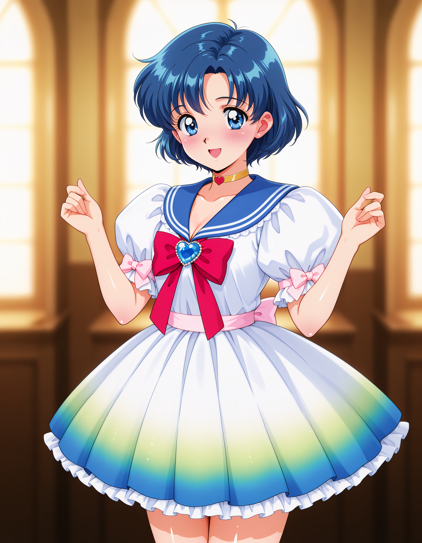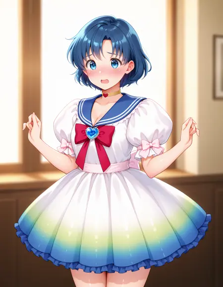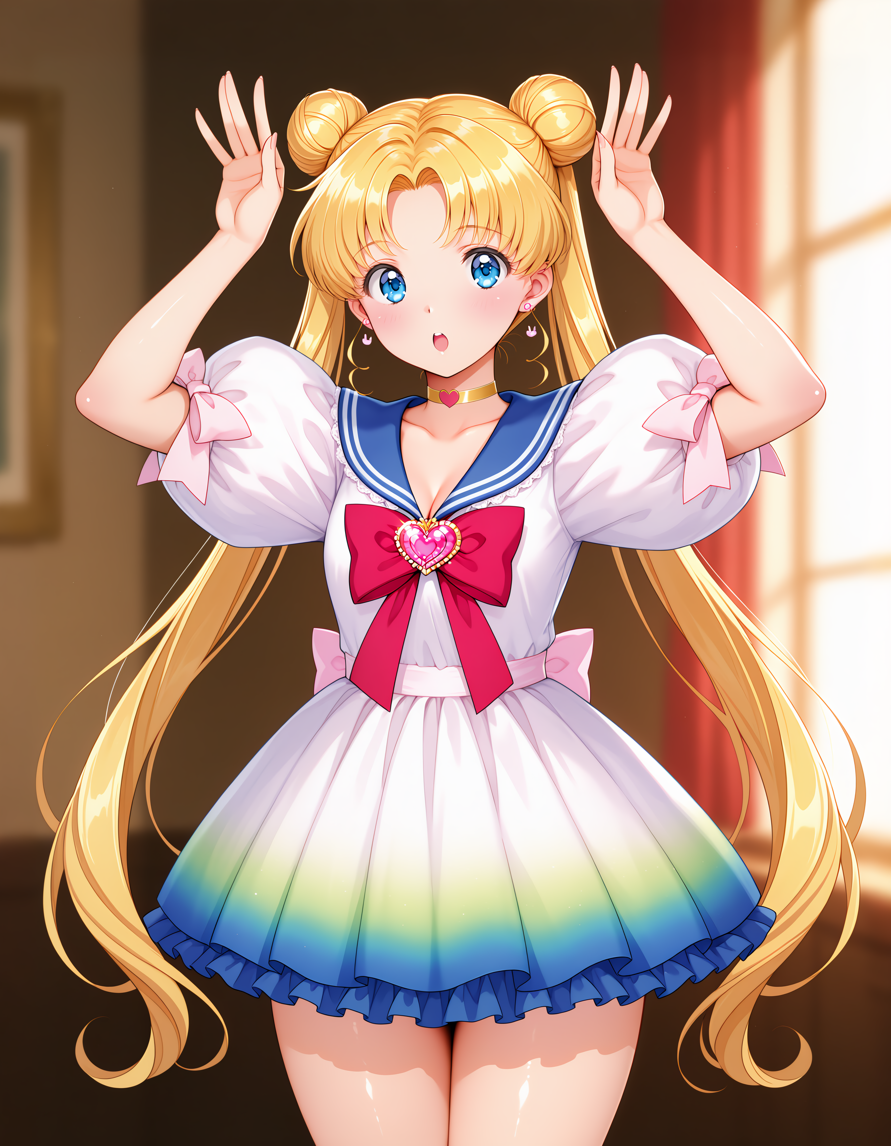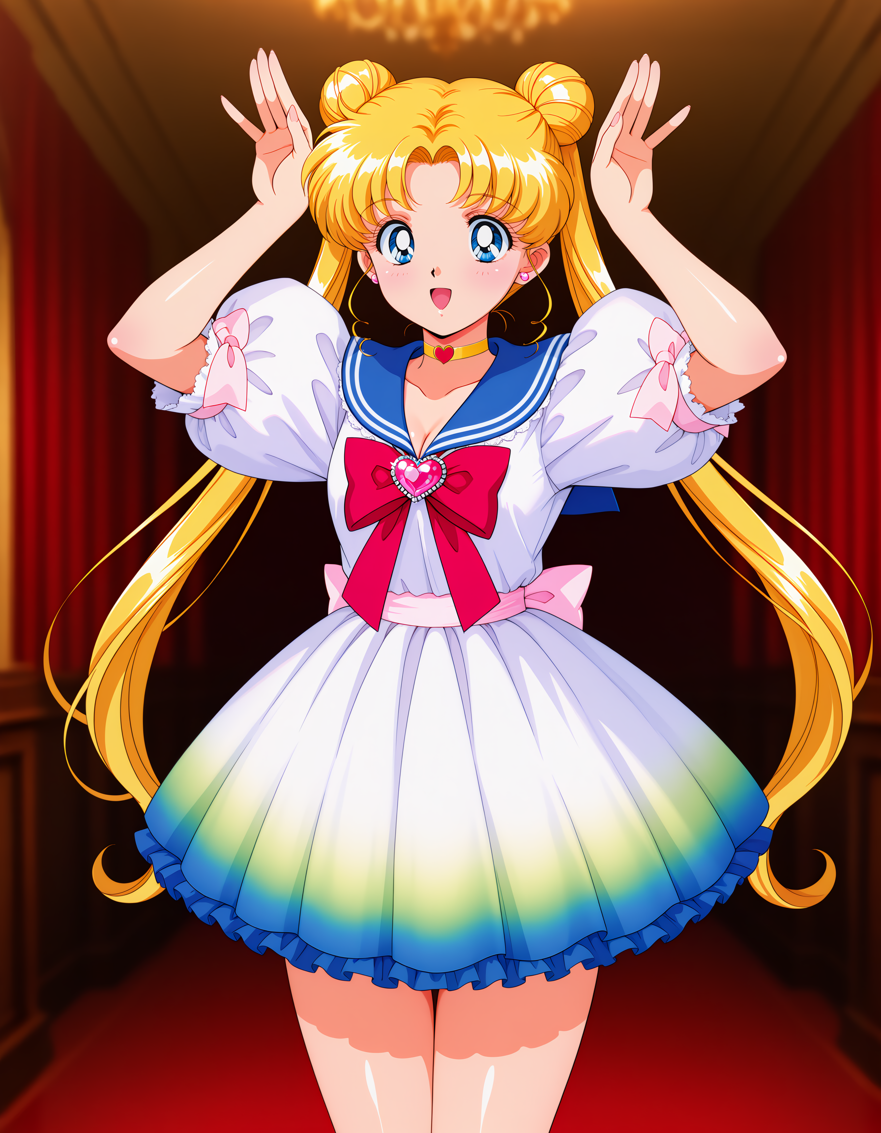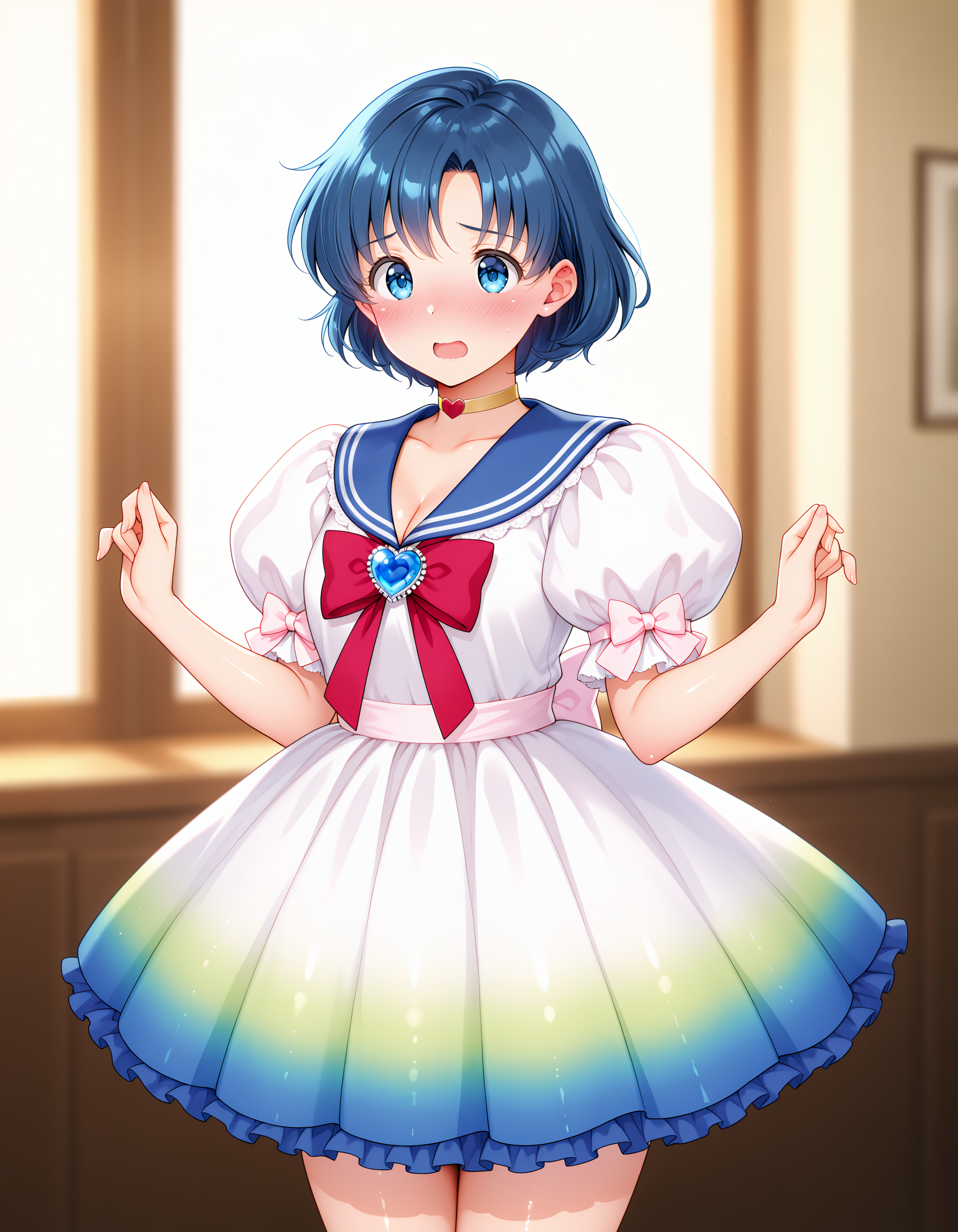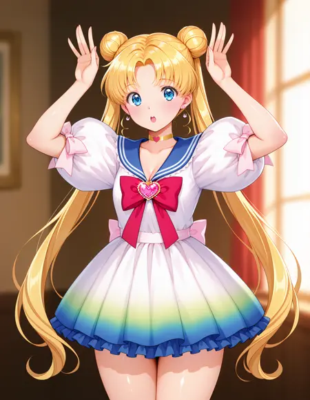 색상을 변경하고, 슈퍼 세일러문 복장을 바로 이 짧은 드레스에 맞도록 조정했습니다.