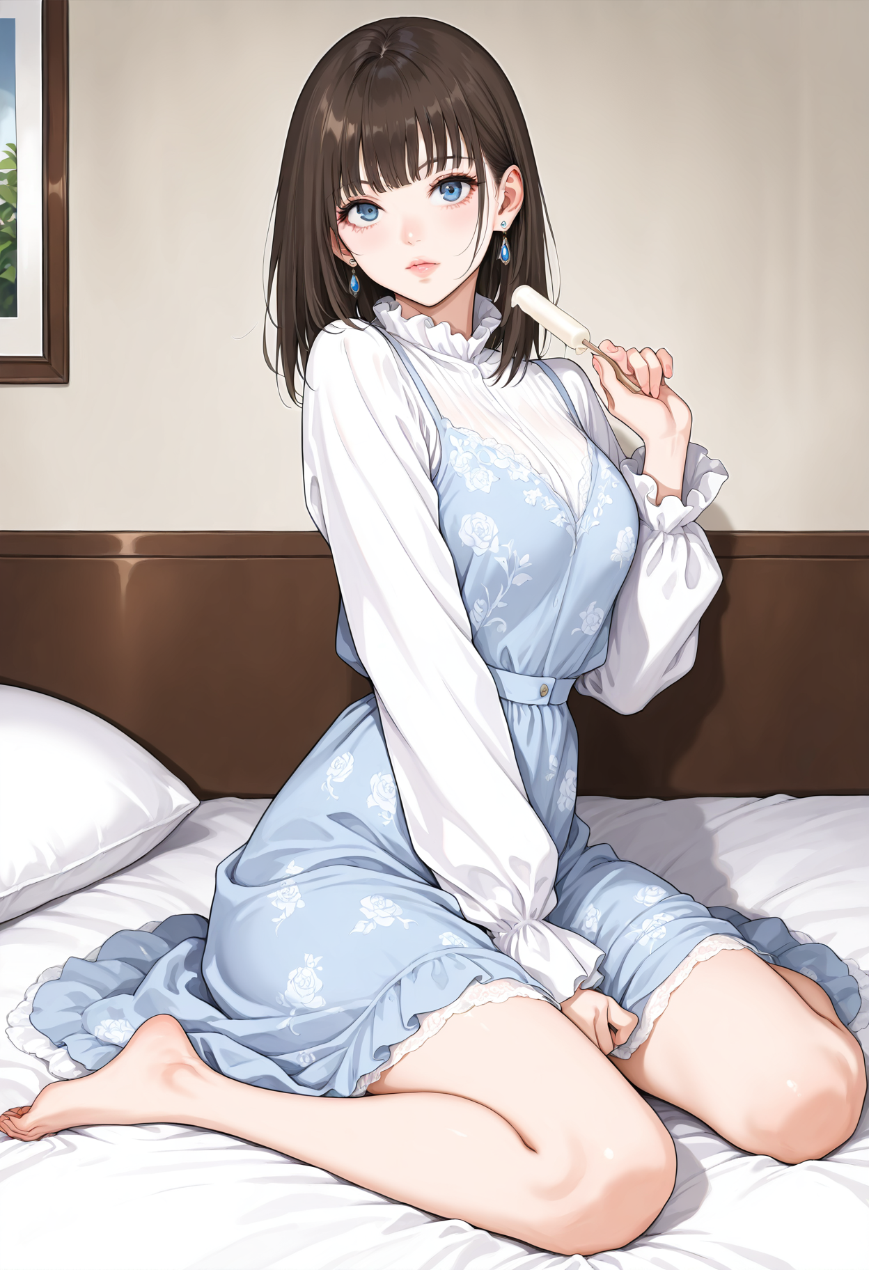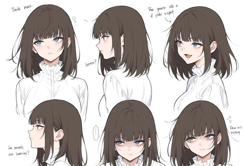 1人女の子、まつげ、青い目、黒髪、茶髪、前髪、短髪、ミディアムヘア、ストレートな前髪