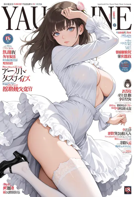 長髪、胸、太ももハイ、髪飾り、髪の装飾、白い太ももハイ、大きな胸、ドレス、黒い靴、長袖、白いドレス、靴、フリル、レース縁、ハイヒール、開いた服、レース縁の脚部、開いたドレス、メリー・ジェーンズ