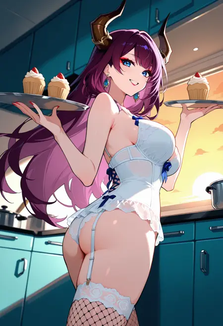 触发词:内衣、束腰、内裤、肩带、蕾丝镂空、蕾丝、网眼镂空、胸饰蝴蝶结、荷叶边、渔网袜、吊袜带