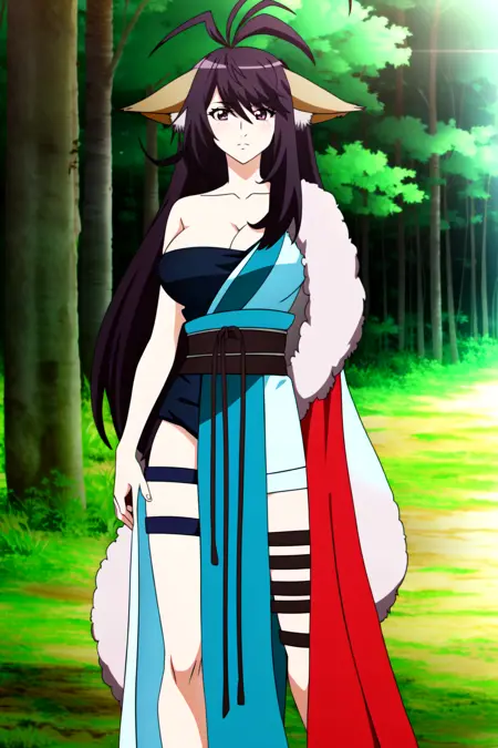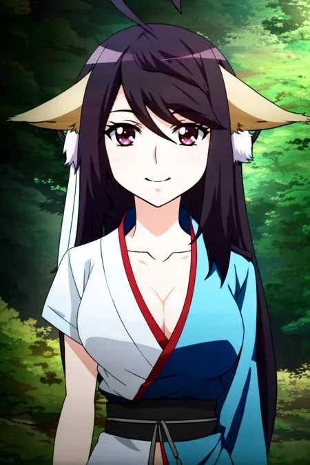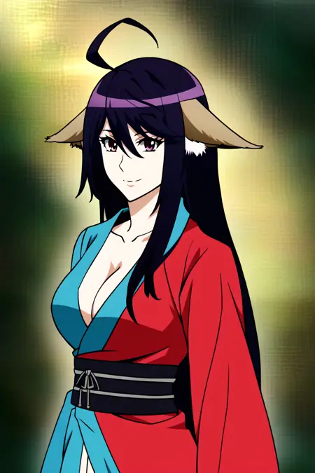 Tushan Yaya, 1girl, solo, animal ears, breasts, long hair, cleavage, high heels, large breasts, full body, purple hair, antenna hair, shoes, sash
