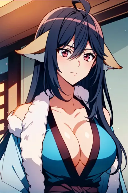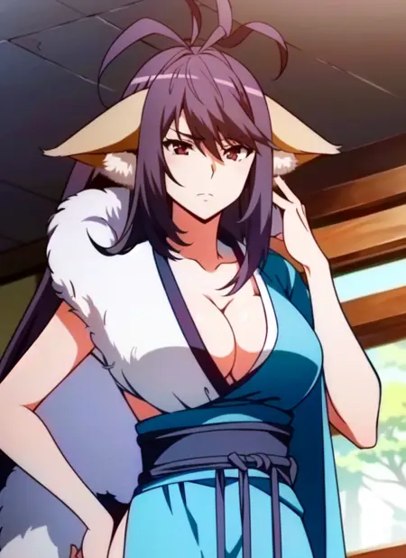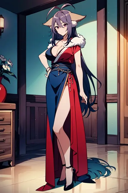 塗山丫丫,1girl,獨奏,獸耳,爆乳,長髮,乳溝,高跟鞋,巨乳,全身,紫色頭髮,天線毛,鞋子,腰帶