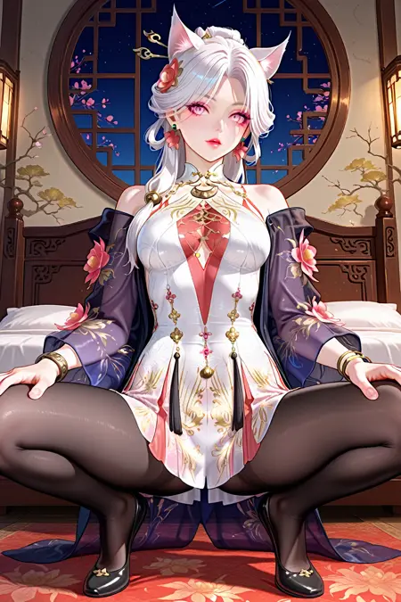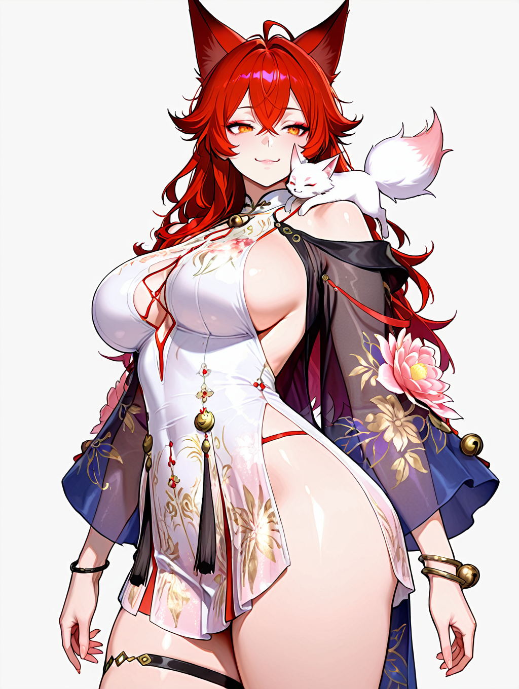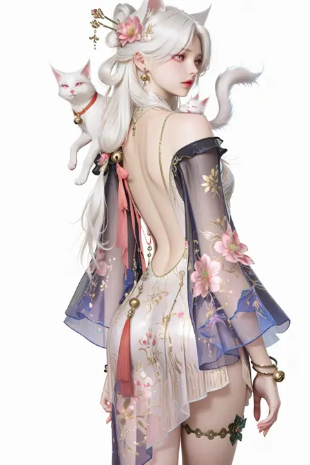 1. 13878w hair0,animal ears,hair flower,hair ornament,jewelry,long hair,white hair,earrings,hair stick,