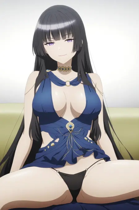 thea, long hair, bangs, black hair, purple eyes, black hair, medium breasts,